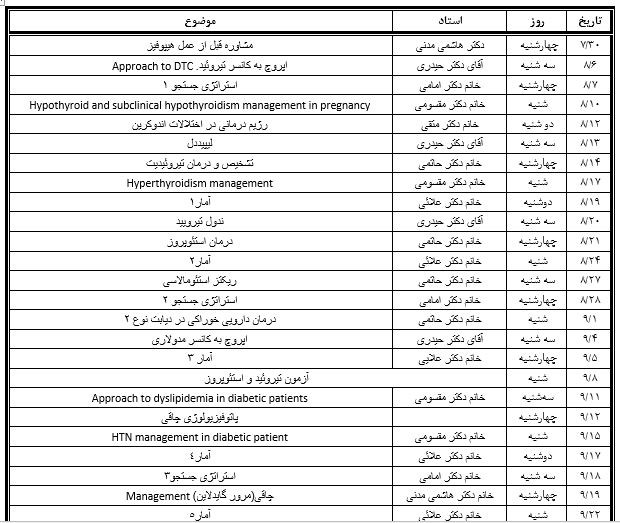 برنامه کلاس های آموزشی دستیاران فوق تخصص در زمستان 1404 به شرح زیر می باشد: